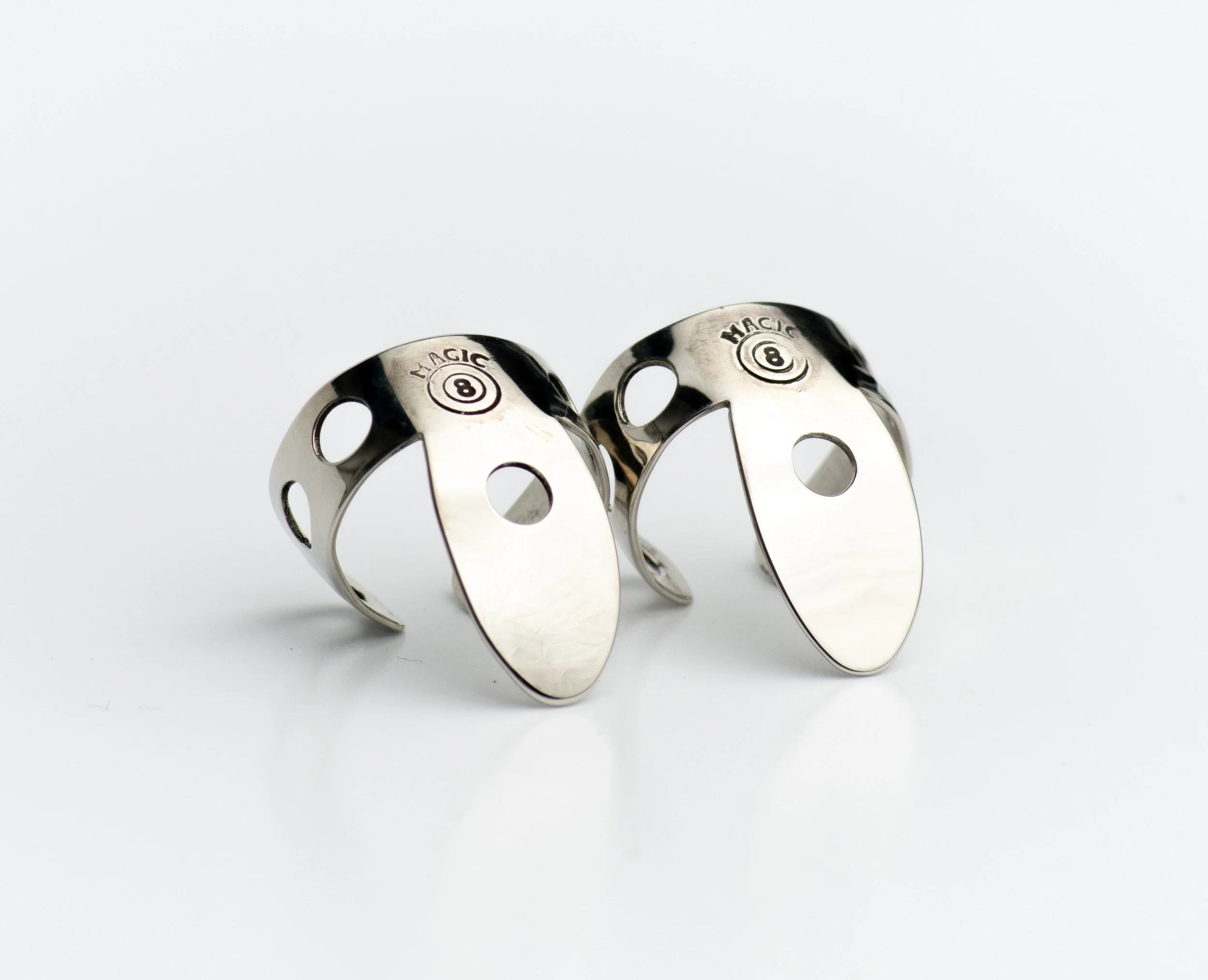 For several years now I have worked with prewar National fingerpicks— analyzing the metal composition, refurbishing, restoring, and making them available to the best players in the business. I’ve finally developed my own pick which pays homage to the old Oval 8s, with close attention given to every detail. Each “Magic 8” fingerpick is hand-shaped and finished by me in my Los Angeles workshop, just a few miles from the original National factory where it all started in the 1928.